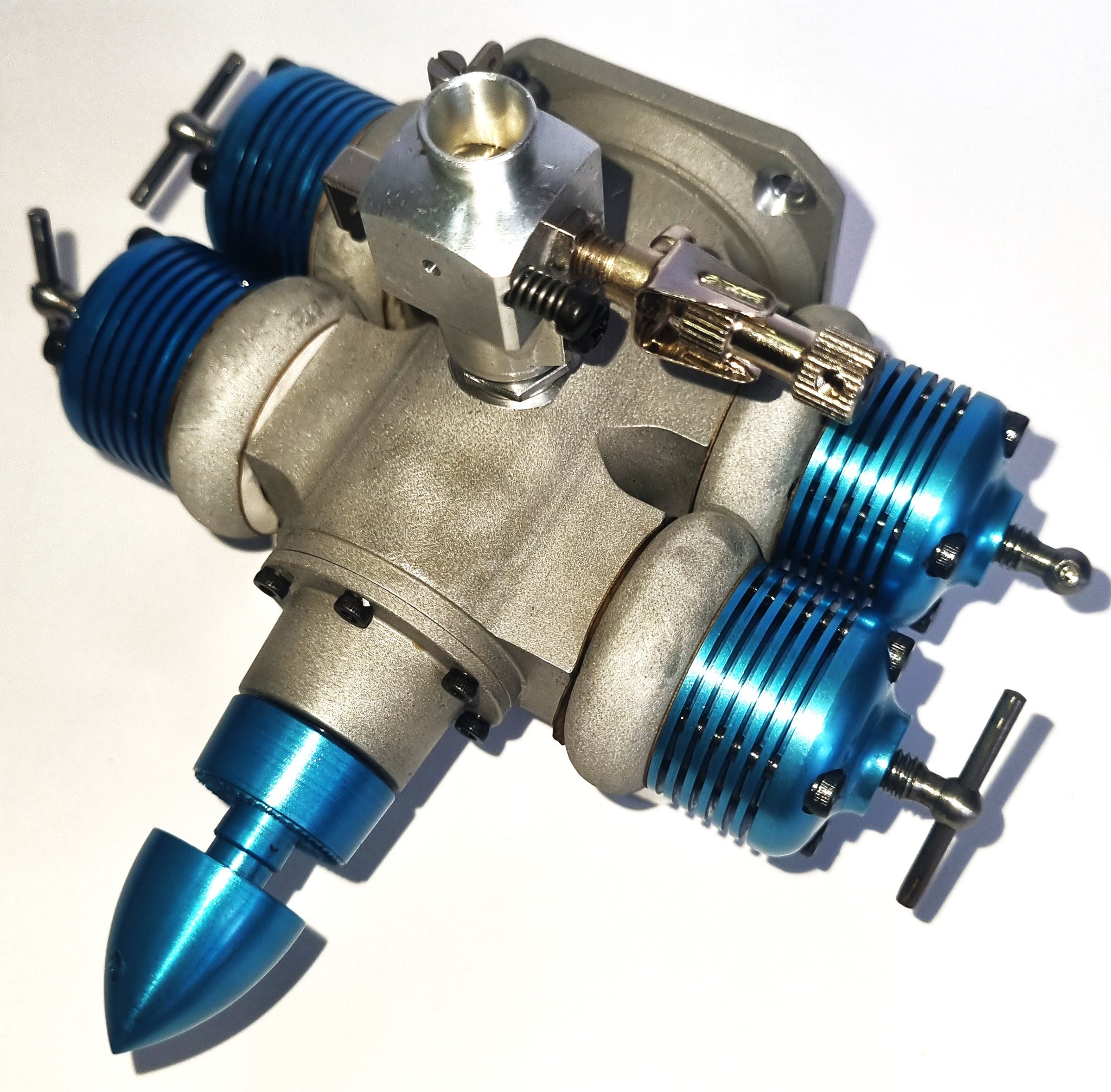 This is our Radio control version of the Phantom flat 4 diesel engine. Engine comes equipped with an R/C carb and a full set of mufflers.