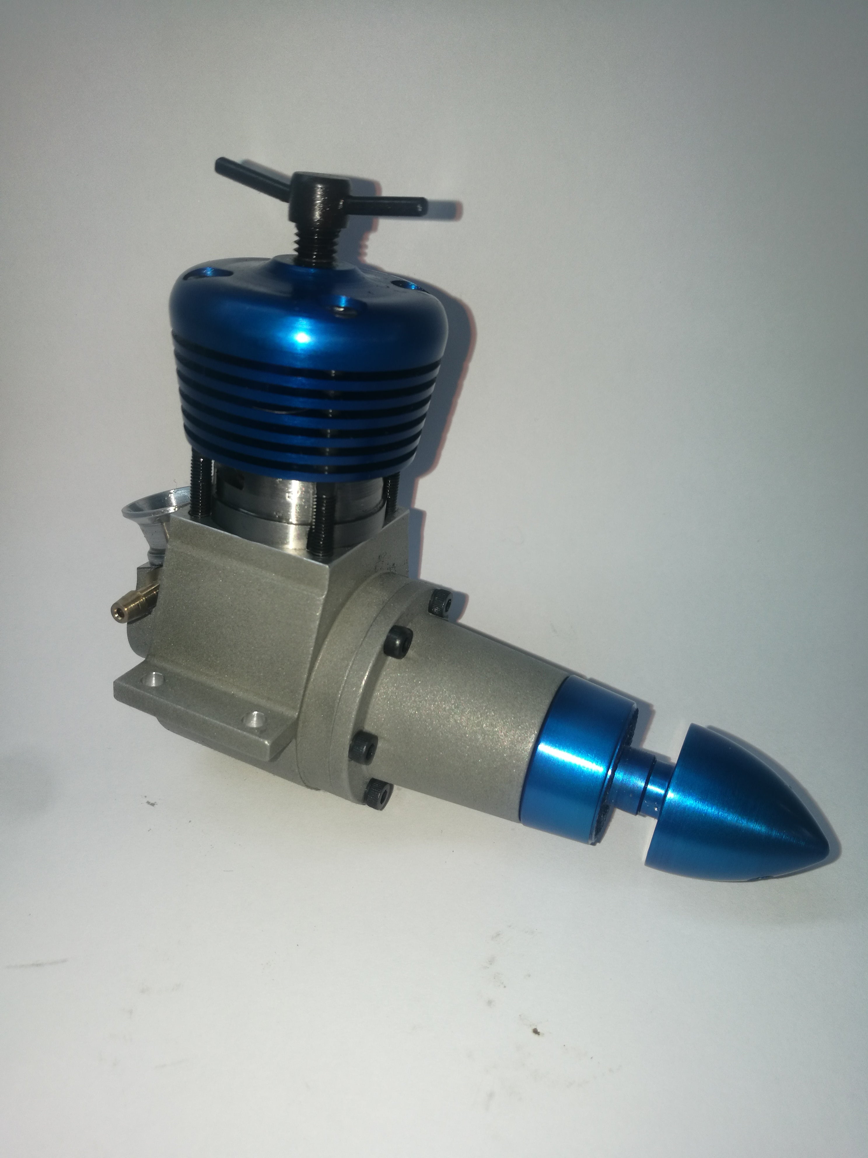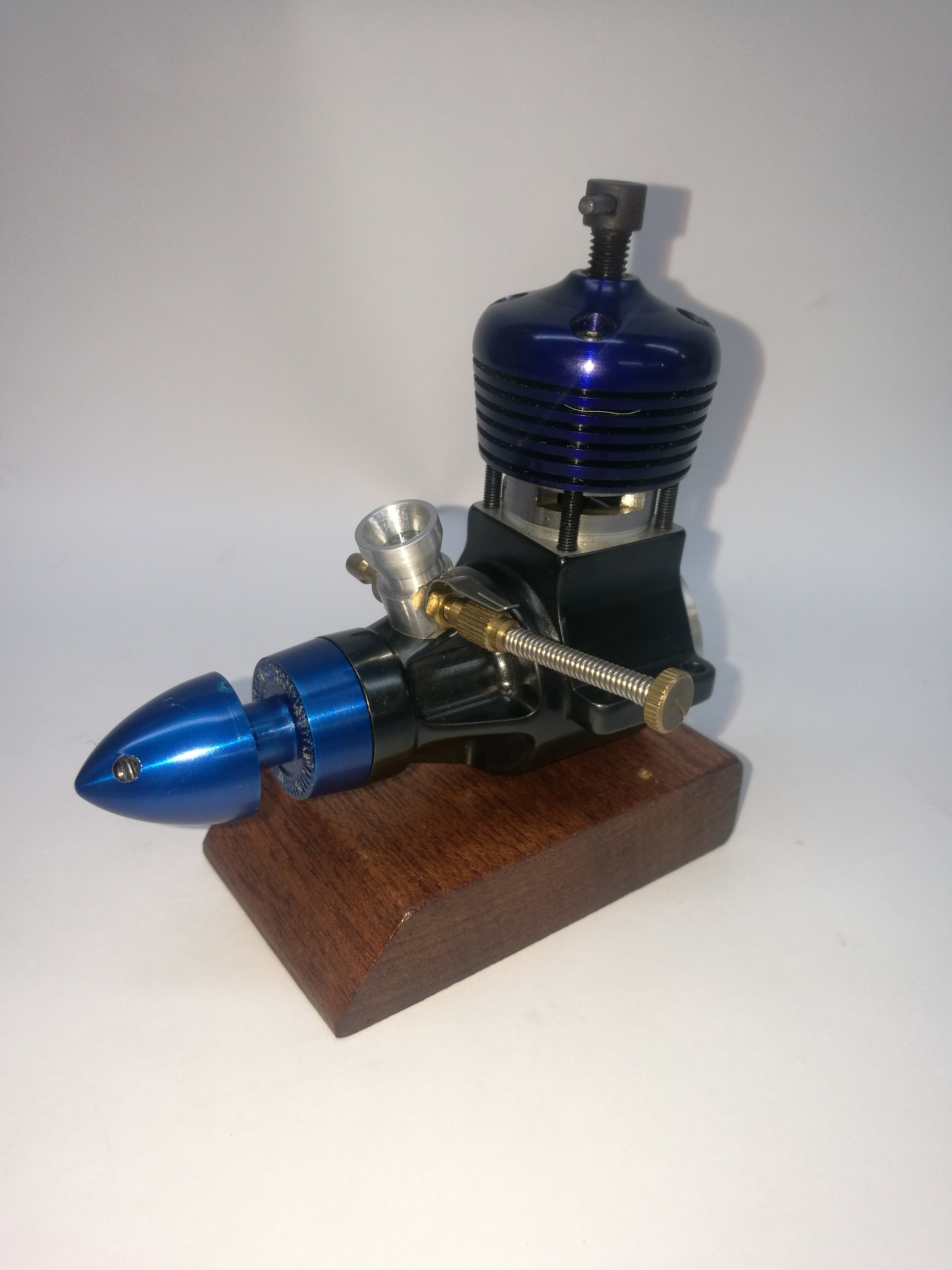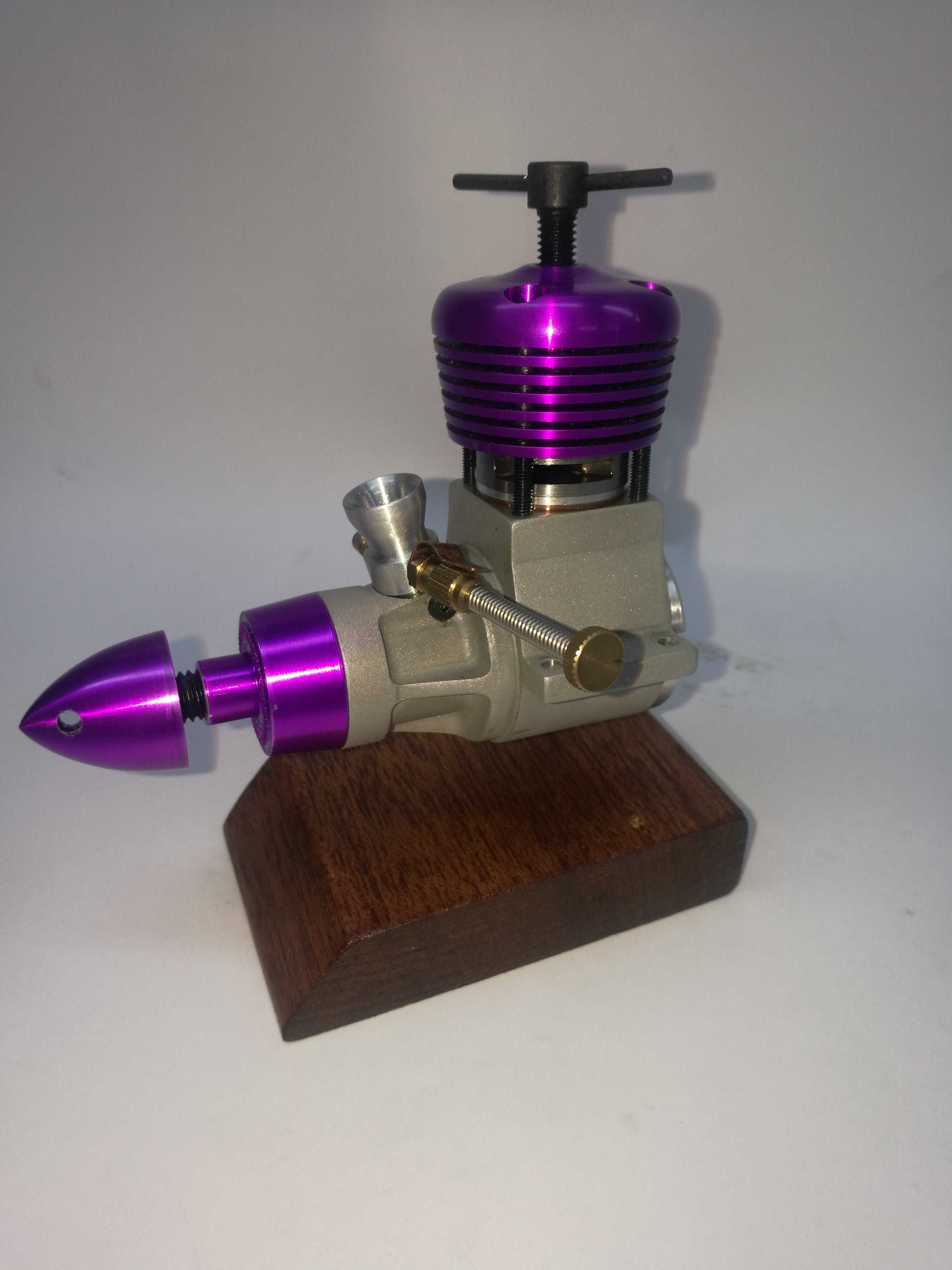This engine was built as a prototype engine for the future production of 5cc diesel and glow control line stunt engines. The case is machined from solid and all machined on manual machines.